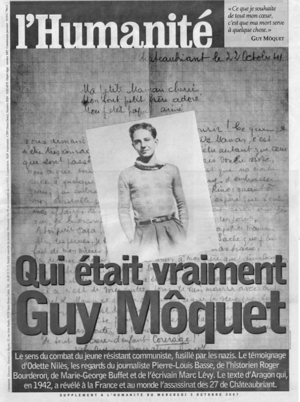 Depuis son annonce par le président de la République au lendemain de son élection en mai dernier, la décision de faire lire la lettre de Guy Môquet a suscité émotion et questions. Émotion chez tous ceux qui, comme notre journal, portent au coeur l'histoire et les combats de ce jeune résistant communiste et, au-delà, de toute la résistance à la barbarie nazie. Quoi de plus juste qu'un hommage soit enfin rendu par la nation tout entière au martyre de Guy Môquet. Mais questions aussi chez ceux qui refusent toute opération de récupération, toute tentative de détournement de sens, l'hommage ayant été décidé par un homme dont le programme politique foule aux pieds les grandes conquêtes sociales de la Libération directement issues du programme du Conseil national de la Résistance et les idéaux pour lesquels combattaient Guy Môquet et les siens. Questions encore chez des enseignants qui refusent une instrumentalisation politicienne de l'histoire.