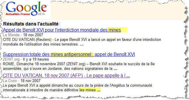 ... ou ce que les medias veulent en retenir. ------------------- Ici, il s'agit des mines anti-personnel. N'a-t'il le droit de s'exprimer que sur certains sujets consensuels?