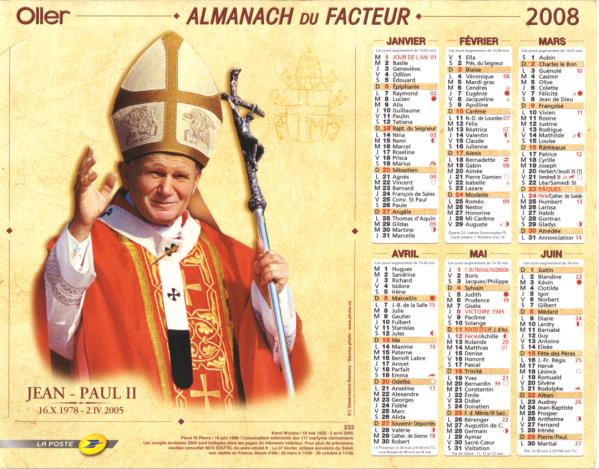 Ah, j'oubliais! Le facteur m'a dit "Je suis content". Je m'attendais à ce qu'il ajoute "Je suis croyant", ou bien "j'aimais Jean-Paul II". Devant mon air interrogateur, il a précisé: "j'avais peur qu'il ne me reste sur les bras. Personne n'en voulait...".