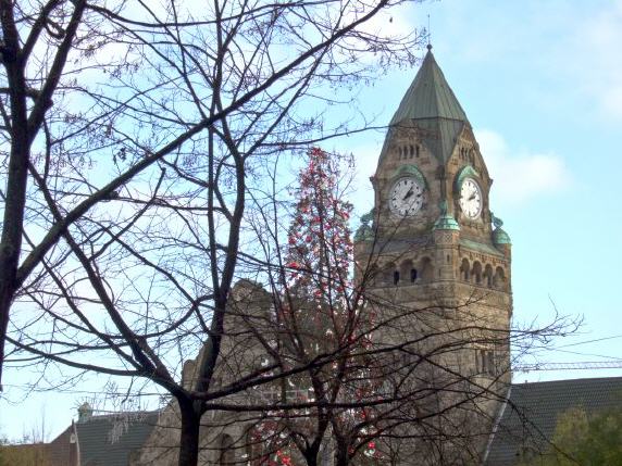 J'ai pris du plaisir à regarder la mise en place des décorations de Noël dans ma ville. Cela reste beau, certains quartiers, comme celui de la gare ne sont pas encore totalement envahis par les "marchaés de Noël, on peut même un tout petit peu rêver, avant le déferlement des festivités païennes. Il y a un sapin superbement décoré, et surtout -ce dont je sais gré au maire- une très belle crèche.