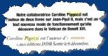 "Le poids des mots, le choc des photos. " Slogan inventé par un publiciste astucieux pour décrire une institution de la presse française. Pour les photos, je ne sais pas, mais pour les mots, on serait tenté de croire que "Paris-Match" est au bord du dépôt de bilan, pour en être réduit à utiliser les services de Caroline Pigozzi, l'auteur(e!!!) de l'article de 7 pages consacré au Pape dans son numéro du 6 décembre. Lisant un peu la presse étrangère, je suis frappée, par comparaison, par la nullité absolue du contenu.