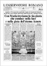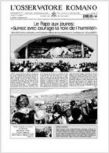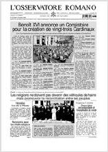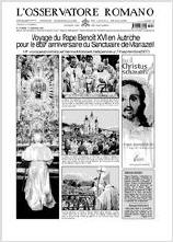 J'ai eu l'occasion de dire à quel point les premières pages du journal du Saint-Siège sont belles, et à conserver. Cette rubrique est destinée à archiver les plus remarquables. Le site du Vatican ne les laisse en ligne qu'une journée.