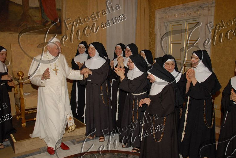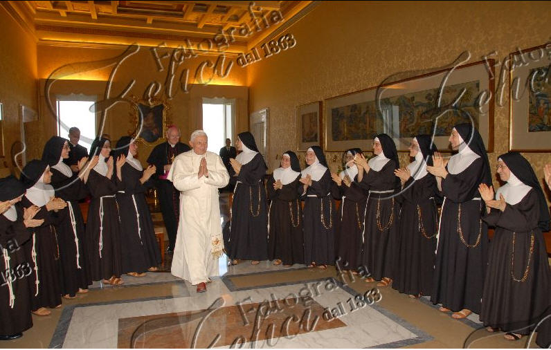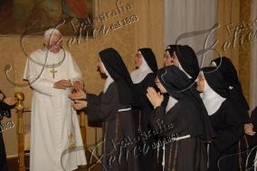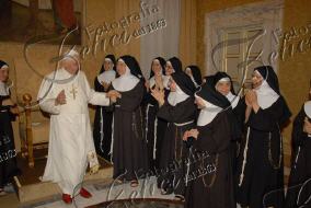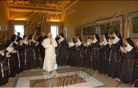 Le Pape a reçu ce matin les Clarisses du couvent d'Albano, situé dans le domaine des Villas pontificales de Castelgandolfo, qu'il a remerciées de leur appui quotidien par la prière et de leur "participation spirituelle à la mission du Pasteur de l'Eglise universelle. Dans le silence de la clôture -leur a-t-il dit- et par votre don total au Christ selon l'esprit franciscain, vous rendez un grand service à l'Eglise".
