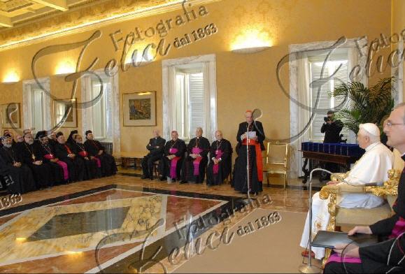 Benoît XVI a demandé aux prélats "que là où l'homme courre et se perd, là où l'on vit comme si Dieu n'existait pas, sachez créer des lieux et des occasions de prière, où dans le silence, en écoutant Dieu par la Lectio Divina, dans la prière personnelle et communautaire, l'homme peut rencontrer Dieu et faire l'expérience vivante de Jésus Christ qui révèle le vrai visage du Père".