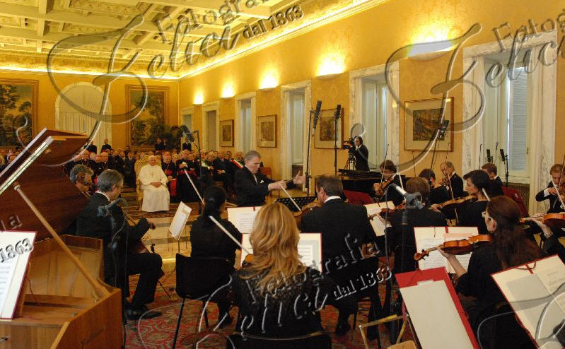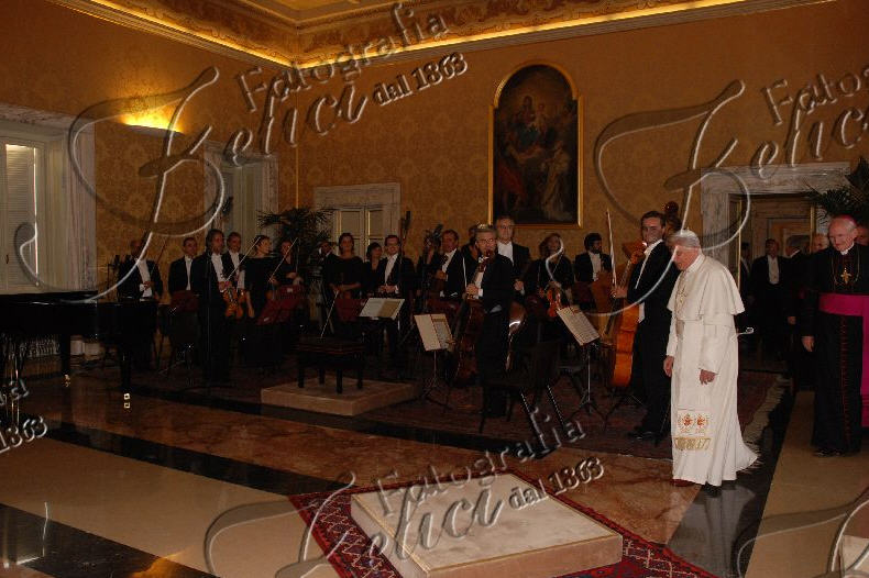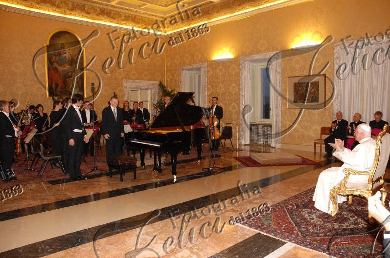 [Dans l'après-midi du 26 septembre], le Pape a assisté à Castelgandolfo au concert donné par l'Orchestre du Festival Benedetti Michelangeli de Brescia et Bergame pour le 110ème anniversaire de la naissance de Paul VI, originaire de cette région. "Ces célèbres pièces musicales -a dit Benoît XVI après leur exécution- sont l'occasion de nous rappeler d'un Pape illustre qui a rendu à l'Eglise et au monde un service précieux, dans une période difficile où la société subissait des mutations profondes, culturelles et religieuses".