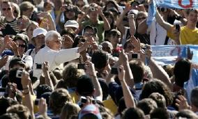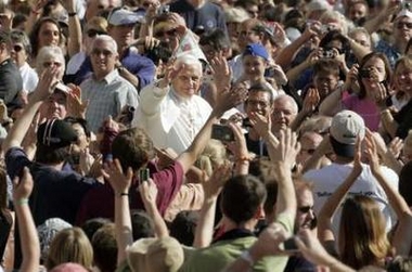 Una grande folla ha accolto Benedetto XVI in piazza San Pietro per il tradizionale appuntamento dell'Udienza Genrale. Tutti i settori sono infatti gremiti e si puo' stimare in circa 40 mila persone il numero dei presenti, dei quali solo la meta' avevano chiesto nei giorni scorsi il biglietto alla Prefettura della Casa Pontificia. Arrivato da Castelgandolfo in elicottero, Papa Ratzinger ha iniziato alle 10,30 il consueto giro sulla jeep bianca scoperta tra i pellegrini. (source: AGI, sur le site Yahoo Italia Notizie)