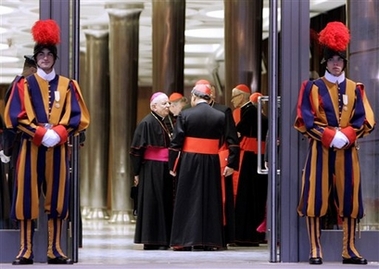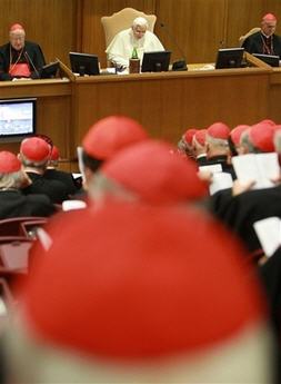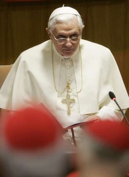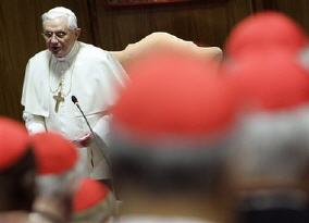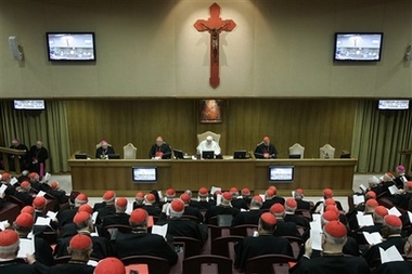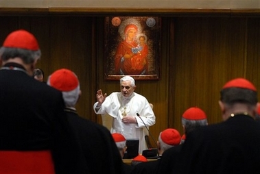 Andrea Tornielli. Texte original en italien (Il Giornale). Ma traduction Ce matin à Saint-Pierre, Benoît XVI créera 23 nouveaux cardinaux, parmi lesquels le président de la CEI Bagnasco. Et hier, comme c'est maintenant la tradition, le Pape a voulu discuter avec tous les 'porporati' sur quelques thèmes d'actualité de la vie de l'Église. L'argument du débat, qui s'est tenu à huis-clos, a été le dialogue oecuménique avec les chrétiens des autres confessions. On a vu émerger la volonté de collaborer avec les autres chrétiens pour défendre la vie et la famille, et chercher à endiguer le sécularisme.