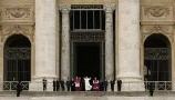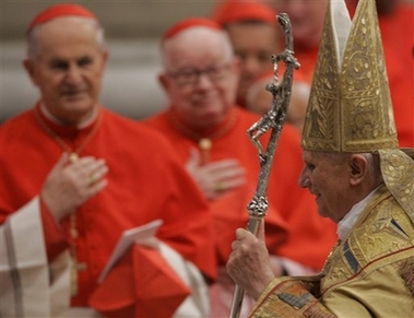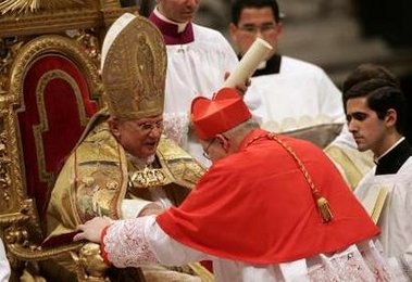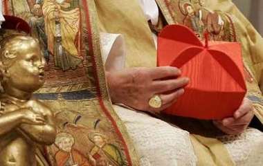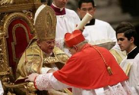 La cérémonie de remise des "barrettes" rouges aurait dû se dérouler à l'extérieur, mais en a été empêchée par un vent fort et une température glaciale - pour Rome! Délicatesse du Saint-Père, qui est venu saluer sur le parvis les nombreux fidèles ayant assisté à la cérémonie sur les écrans géants. Information sur le blog de Raffaella: (traduction)