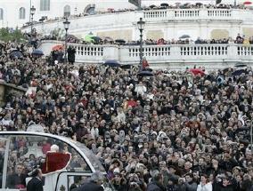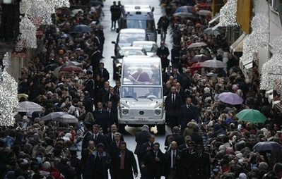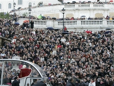 8 décembre, jour férié en Italie. Traditionnellement, le Pape se rend devant la statue de la Sainte-Vierge, Place d'Espagne. C'était la troisième fois depuis qu'il est Pape, la foule semblait immense, et pour la première fois, il a utilisé la 'papamobile', plutôt que l'habituelle limousine.