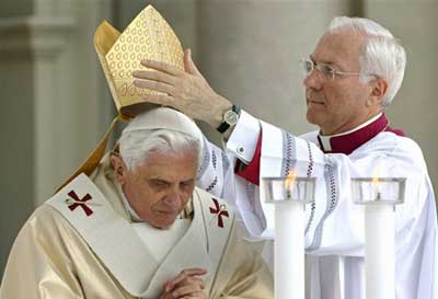 Nous en avons déjà parlé ici: Nouveau cérémoniaire pontifical ------------------- Le départ de Mgr Piero Marini a fait couler beaucoup d'encre dans le milieu traditionaliste (il suffit de visiter certains sites pour s'en convaincre). (Photo dans La Croix)