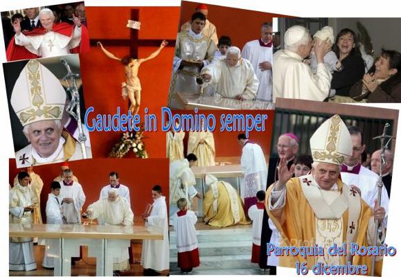 Le 16 décembre, Benoît XVI s'est rendu ce matin à la paroisse de Notre-Dame du Rosaire, où il a célébré la messe et présidé la dédicace de la nouvelle église. C'est sa cinquième visite pastorale à un communauté paroissiale de Rome. "La liturgie de l'Avent -a dit le Pape- nous rappelle que nous devons sortir de la routine et de la médiocrité, qu'il faut abandonner la tristesse et le découragement...parce que le Seigneur est proche". Puis il a souligné que cette nouvelle église se trouve à proximité de la catacombe de Generosa, où selon la tradition sont enterrés trois jeunes martyrs chrétiens, les frères et sœurs Simplice, Faustin et Béatrice.