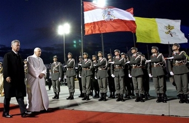 Ci-dessus: concert en l'honneur du Saint-Père, au Konzert- Hall de Vienne, en présence des représentants du bénévolat