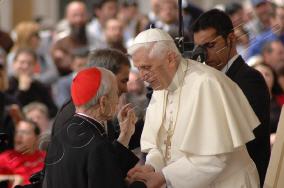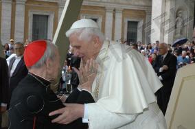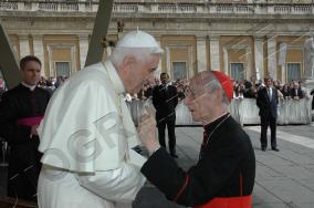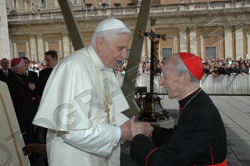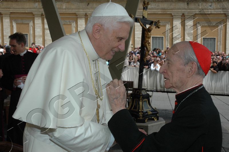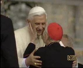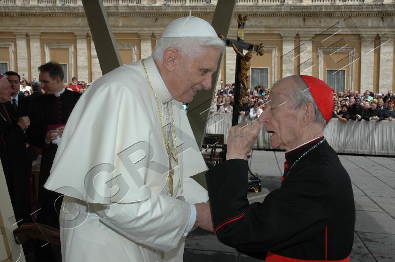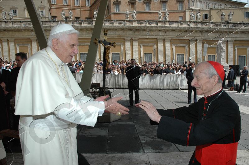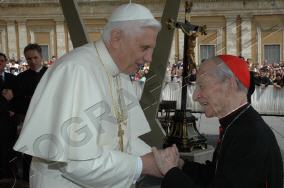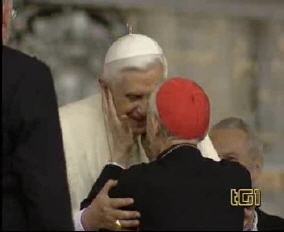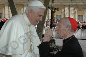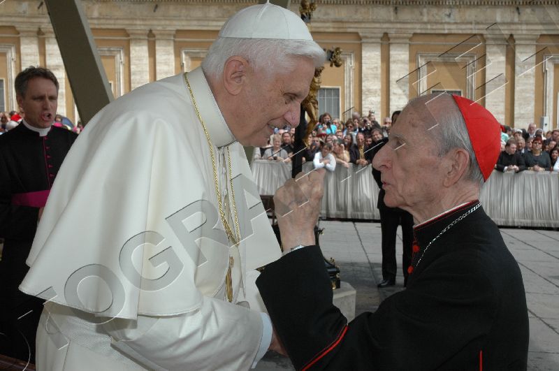 Toute sa personne irradie la gentillesse, la simplicité et la sérénité. Sa complicité avec le Saint-Père saute aux yeux. ------------------ Le Cardinal Tonini avait pris vigoureusement parti en faveur du célibat des prêtres, et avait exprimé sa tristesse lorsque l'Abbé Pierre, instrumentalisé par une certaine frange progressite, avait confié à la plume de Frédéric Lenoir (Le Monde des Religions) le soin de régler ses comptes avec Dieu, en confessant ses coups de canif au voeu de chasteté. Ci-dessous, un extrait d'une interview (non traduite, mais très facile à lire) publiée par l'hebdomadaire Panorama. ----------------------