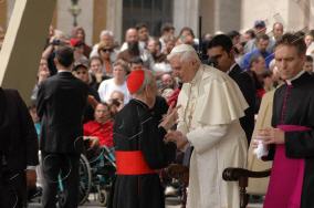 Le cardinal Ersilio Tonini, archevêque émérite de Ravenne, 93 ans, est une de ces personnalités qui, à l'intérieur de l'Eglise, pour le témoignage qu'ils apportent, inspirent à la fois respect et affection. Ces photos m'ont été transmises par Sheelagh, et ont dû être prises lors d'une audience générale en 2005.