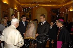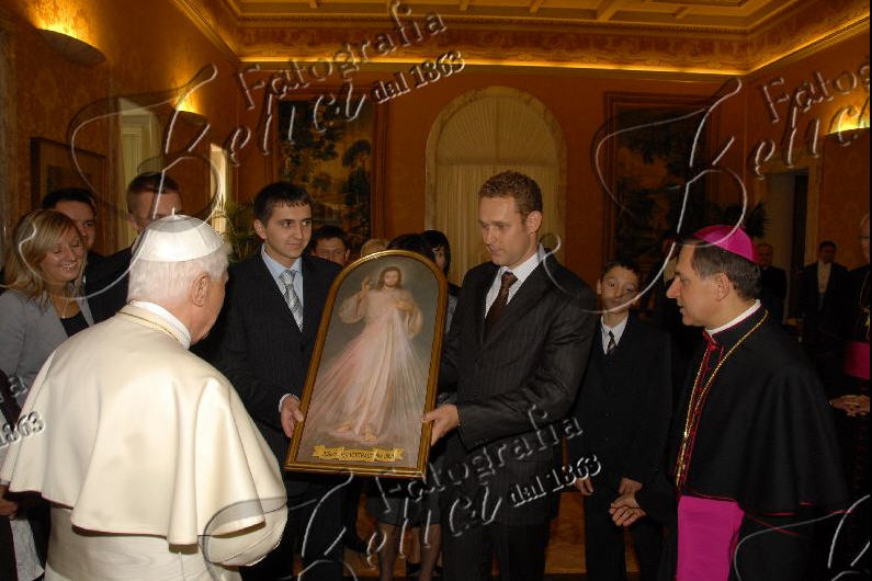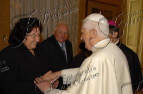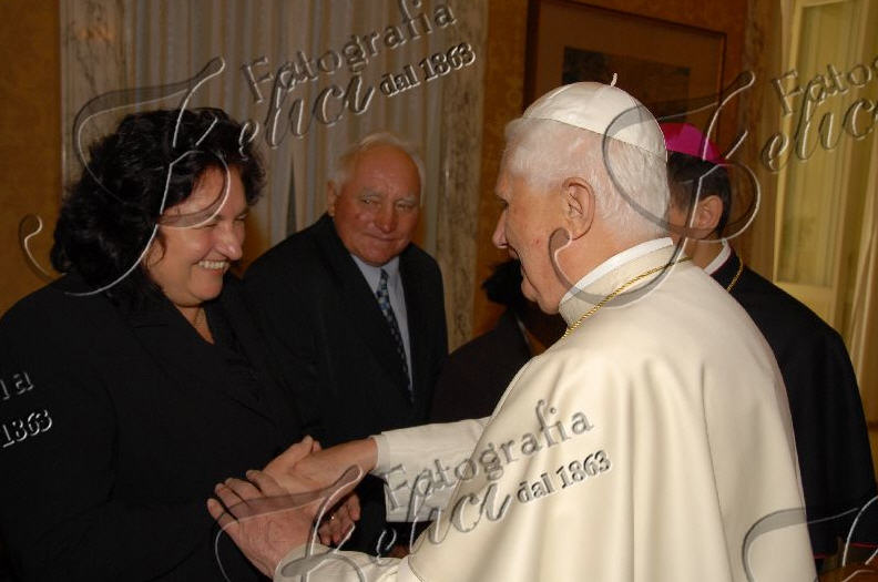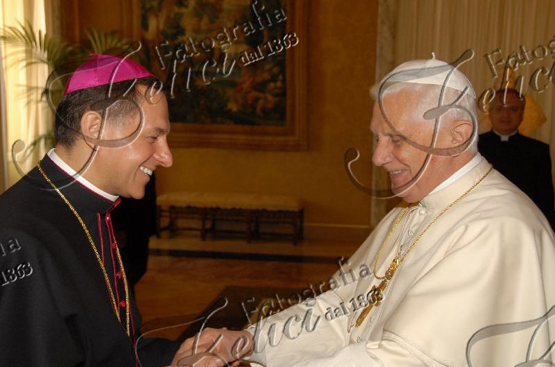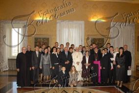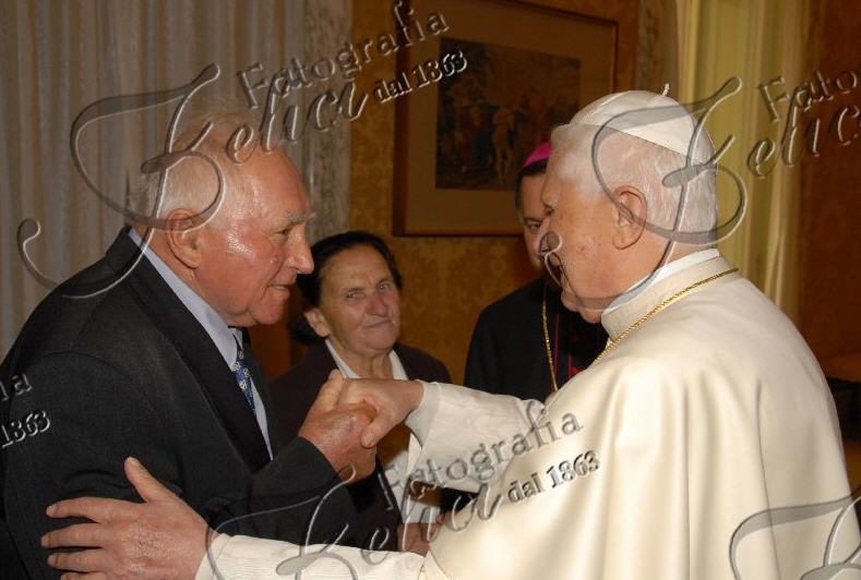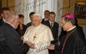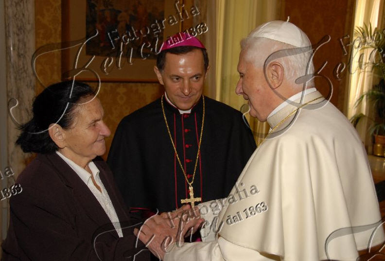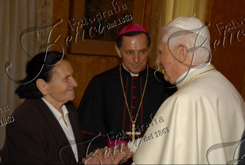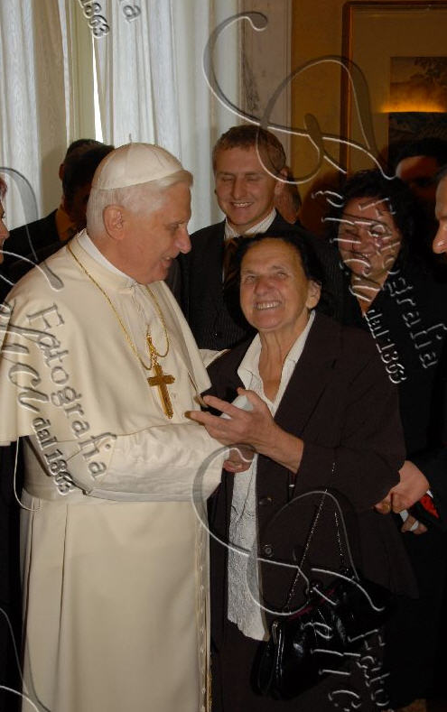 Décidément, l'agence FOTOGRAFIA FELICI réalise, discrètement et à l'écart des grandes agences de presse, les plus formidables des reportages. Par exemple, cette série de photos non légendées, nous permet de vivre une belle fête de famille, presque comme si on y était. Cela se passe juste après l'Angelus du 30 septembre, à Castelgandolfo. La veille, "Don Mietek" a reçu l'ordination épiscopale des mains du Saint-Père. Là, on devine que sa nombreuse famille a été reçue en audience privée au palais Apostolique, par le Pape. Il faut observer attentivement les expressions, les gestes, les attitudes. L'émotion profonde des parents, la gentillesse affectueuse du Saint-Père, le sourire du jeune évêque. Une vraie fête de la joie partagée, sans protocole, dans la simplicité et la cordialité.. Il est très facile d'imaginer les dialogues qui se sont échangés, jusqu'à la photo de groupe finale, dans un joyeux désordre guère protocolaire...