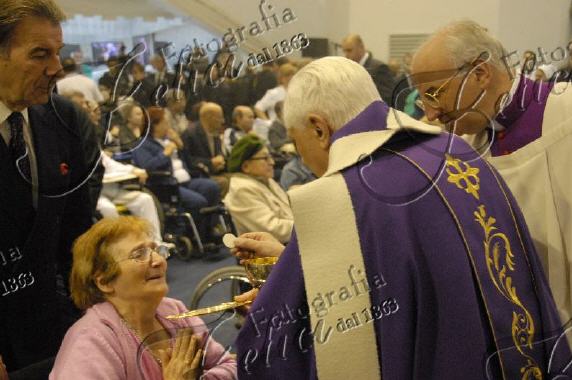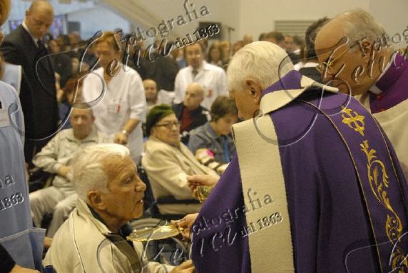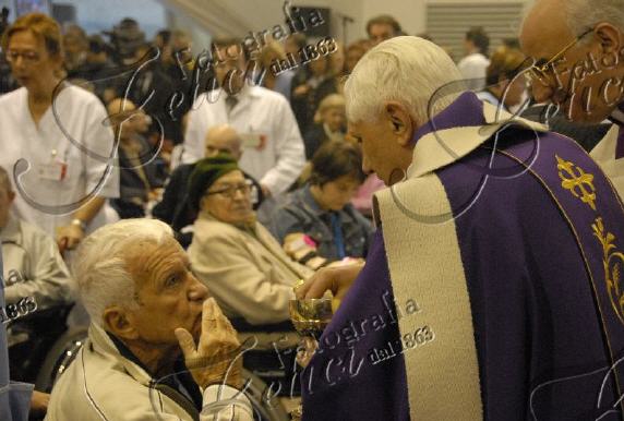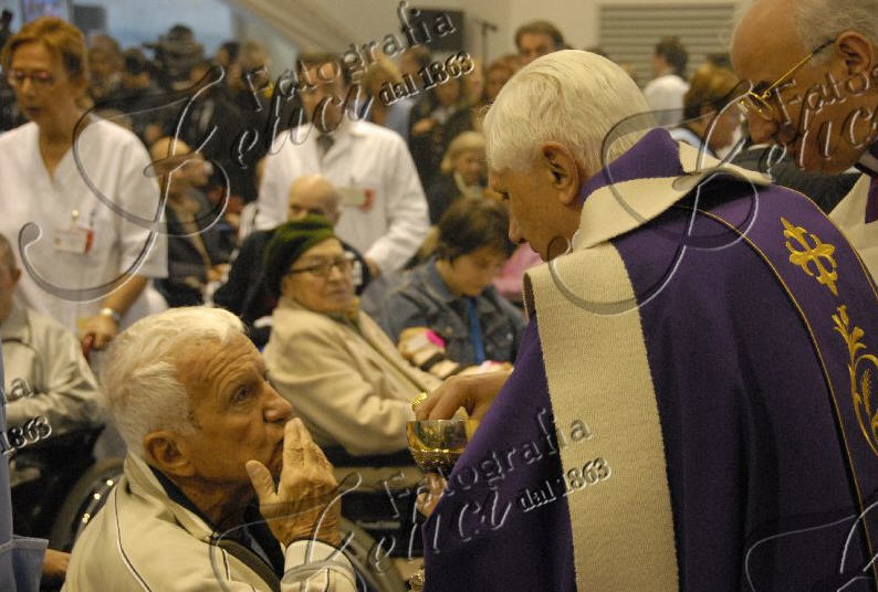 C'était au moment de la communion, dimanche 2 décembre, lors de la messe célébrée par Benoît XVI à l'Hôpital Saint-Jean Baptiste, de l'Ordre de Malte, un établissement spécialisé dans le soin des malades atteints de traumatisme crânien, je crois.