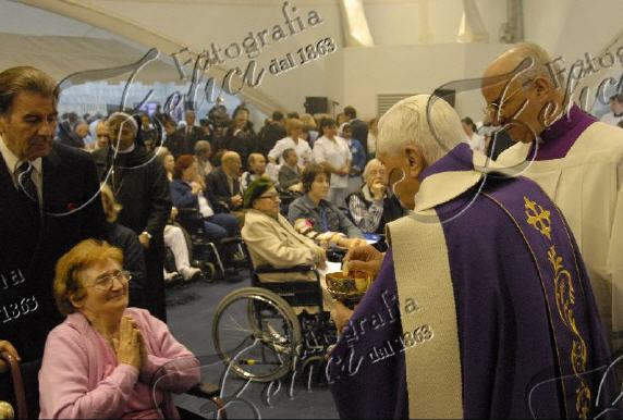 La communion, c'est un moment très intime, et j'évite en général d'en reproduire les images. Mais ici, regardant le "direct" sur KTO, j'avais été extrêmement émue par l'attitude de certains malades, pour qui le fait de recevoir l'hostie des mains du Saint-Père représentait manifestement quelque chose de bouleversant, et d'extraordinaire. On voit très bien le geste d'un homme qui lui envoie un baiser avec le doigt. Et il n'était pas le seul... J'ai trouvé ces images sur le site de Fotografia Felici. Je les trouve plus éloquentes que tout. Certains diront "ils n'auraient pas dû, ils se trompent". Mais on voit bien aussi que leur émotion avait décuplé leur ferveur.
