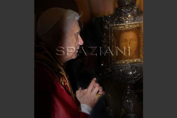 Le 1er septembre 2006, Benoît XVI s'était rendu en pélerinage à Manoppello, dans le massif des Abbruzzes, dans la province de Chieti, à 23 km de Chieti et 190 km de Rome. Le sanctuaire abrite le voile sur lequel est imprimé le visage de Jésus. Les traits de ce visage, les blessures aussi, coïncident parfaitement avec ceux du Saint-Suaire de Turin.