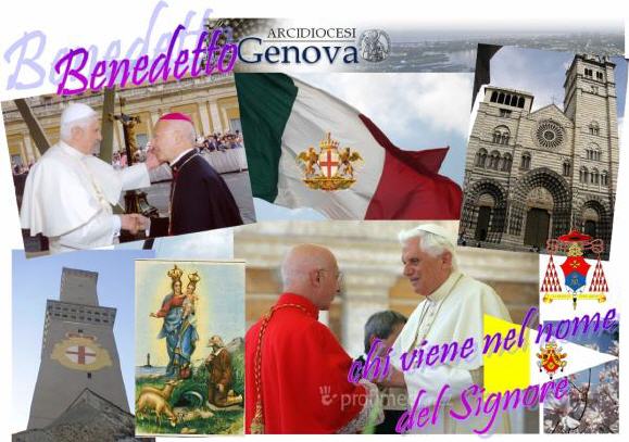 Gloria a utilisé pour ce collage le tableau représentant le Saint-Père, qui est le cadeau de l'Archevêché de Gênes. Voir ici: A Gênes, un cadeau pour Benoît XVI