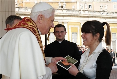EDUQUER AU BIEN 23 FEV 2008 ---------------- Ce midi, place St.Pierre, Benoît XVI a remis symboliquement aux familles, professeurs, animateurs et éducateurs romains sa lettre du 21 janvier dernier au diocèse et à la ville sur l'éducation.
