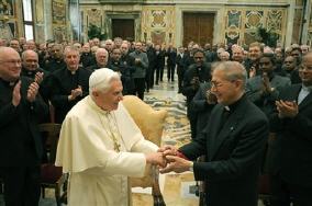 JESUITES: FIDELITE AU CHARISME ORIGINAIRE 21 FEV 2008 ---------------- Le Saint-Père a reçu ce matin les participants à la Congrégation générale de la Compagnie de Jésus avec son nouveau Préposé général le père Adolfo Nicolás qui se sont réunis à Rome le 7 janvier dernier. Le Pape a d’abord encouragé les personnes présentes et tous les frères de la Compagnie à être toujours fidèles à la mission reçue de Dieu, "en toute fidélité au charisme originaire, dans le contexte ecclésial et social qui caractérise ce début de millénaire". "L’Eglise -a-t-il dit- a un besoin urgent de personnes dont la foi est solide et profonde, de culture sérieuse et d’une vraie sensibilité humaine et sociale, de religieux et de prêtres qui dédient leur vie à être sur ces frontières pour témoigner et aider à comprendre qu’il existe une harmonie profonde entre foi et raison, entre esprit évangélique, soif de justice et engagement pour la paix". "La Compagnie de Jésus -a poursuivi Benoît XVI- fidèle à sa plus grande tradition, doit continuer à former ses membres avec une grande attention à la science et à la vertu, sans se contenter de la médiocrité parce que le devoir de la confrontation et du dialogue avec les contextes sociaux et culturels très divers et les mentalités différentes du monde d’aujourd’hui, est des plus difficiles et éprouvants.