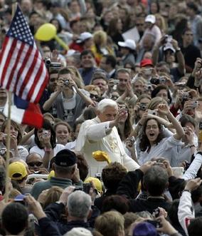 La catéchèse porte sur le "patron" du Pontificat, Saint-Benoît de Nurcie, également patron de l'Europe. (9/4/2008) ------------------ .... Paul VI, en proclamant saint Benoît Patron de l'Europe le 24 octobre 1964, voulut reconnaître l'œuvre merveilleuse accomplie par le saint à travers la Règle pour la formation de la civilisation et de la culture européenne. Aujourd'hui, l'Europe - à peine sortie d'un siècle profondément blessé par deux guerres mondiales et après l'effondrement des grandes idéologies qui se sont révélées de tragiques utopies - est à la recherche de sa propre identité. Pour créer une unité nouvelle et durable, les instruments politiques, économiques et juridiques sont assurément importants, mais il faut également susciter un renouveau éthique et spirituel qui puise aux racines chrétiennes du continent, autrement on ne peut pas reconstruire l'Europe. Sans cette sève vitale, l'homme reste exposé au danger de succomber à l'antique tentation de vouloir se racheter tout seul ...