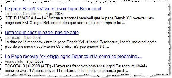 Je me réjouis, bien sûr, que Madame Bétancourt (voir ici: Bio) ait retrouvé la foi durant sa captivité. Pourquoi pas? Cela n'empêche pas l'annonce (par elle? sa famille? un "raccourci" médiatique?) de l'invitation du Pape d'être un peu prématurée. Il la recevra peut-être... mais à sa demande à elle.