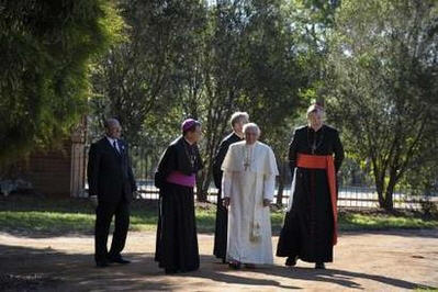 Il dit la messe dans la chapelle privée, il reçoit l'hommage de l'archevêque de Sidney "un ratzingérien de fer", le cardinal Pell, il se promène au bord d'un lac... il se repose.