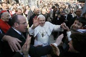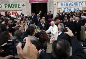 Avant la fin de la visite de Benoît XVI, un paroissien lui a récité une poésie en dialecte romain et le Pape a dit: "Malheureusement, je ne parle pas le patois romain, mais entre catholiques, nous sommes tous Romains, nous portons tous Rome dans notre cœur et comprenons tous quelque peu ce dialecte".