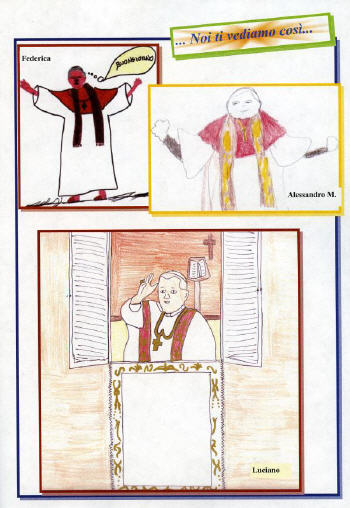Leur Pape est drôle, plus grand que les arbres, avec deux pommettes rouges sur les joues, dressé sous le ciel qui a un soleil placé un peu de travers. C'est le Pape imaginé par les enfants de " Gaslini" ; Giacomo a ajouté des prés verts et là, au milieu il a placé le Pape. Les dessins sont leur cadeau à Benoît XVI qui hier matin est venu leur rendre visite, d'abord dans les services et ensuite dans l'atrium. Le perron qui, de l'atrium, mène à l'église, est rempli de gens, médecins, infirmières, visiteurs, parents. Et la fanfare de la " Società Filarmonica di Sestri levante" qui jouera l´hymne du Vatican. Plus bas d'autres hôtes l'attendent... Le maire Marta Vincenzi, est vêtue de noir avec l'écharpe tricolore. Quelques enfants sont au premier rang, assis dans des chaises roulantes aux roues coloriées. Il y a Alessia, 16 ans, avec des nattes, elle souffre de dystrophie, explique sa maman, et ainsi « elle semble plus petite que son âge ». Alessia est contente parce que le Pape, elle ne l'a jamais vu, c'est la première rencontre aussi pour Antonio, l'enfant qui est à côté d'elle, avec un grand turban sur la tête parce qu'il a été opéré, et pour Stefano, avec sa caquette rouge et blanche, lui aussi en fauteuil roulant. Ils ne semblent pas prêter attention à la confusion autour d'eux, les hommes des Chevaliers de Malte, de la Croix rouge du Vatican, ceux de la sûreté qui répartissent les places, don Aldo le moine capucin, ému et un peu agité, qui s'occupe de tout mais a oublié de faire bloquer le mécanisme des cloches qui sonneront au beau milieu du discours de papa Ratzinger. Le Pontife arrive à 10 heures 10, accompagné du cardinal Bertone. Il est accueilli par le salut du maire, puis du professeur Lorenzelli [qui fait "les honneurs de la maison"]: « Ici, ce n'est pas seulement un hôpital, mais un vrai temple de la vie qui se consacre avec amour au service des petits malades », dit-il. Et il rappelle l'histoire de l´Institut voulu par Gerolamo Gaslini en mémoire de sa fille Germana, morte à 12 ans. Il y a un rappel du Pape Jean Paul II, de sa visite en 1985 pour les cinquante ans de l'Institut pédiatrique. Jean Paul II qui, ému, s'adressa ainsi aux petits patients: « je suis venu ici pour vous apporter une caresse et vous embrasser ».