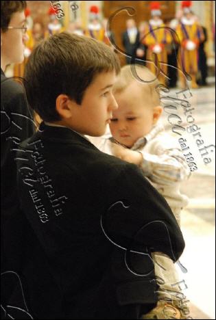 Je suis en particulier heureux d'accueillir de si nombreux enfants, qui sont les fleurs les plus belles de vos familles et qui nous rappellent l'amour privilégié que Jésus nourrissait pour les petits.