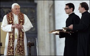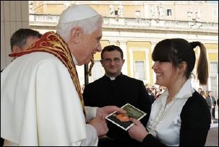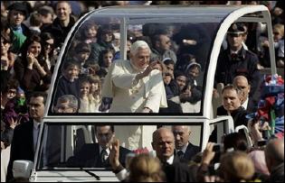 Ce midi, place St.Pierre, Benoît XVI a remis symboliquement aux familles, professeurs, animateurs et éducateurs romains sa lettre du 21 janvier dernier au diocèse et à la ville sur l'éducation.