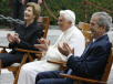 Avec un protocole inédit, l'audience avait commencé avec quelques minutes d'avance, peu avant 11 heures, près de la Tour San Giovanni. Le déroulement particulier de la rencontre avait été mis au point par Mgr James Michael Harvey, préfet de la Maison Pontificale, qui accompagnait le Pape avec Mgrs Georg Gänswein, secrétaire particulier de Benoît XVI, et Petar Rajic, prélat d'honneur. Le président Bush était accompagné de son épouse Laura et de l'ambassadeur des Etats Unis auprès du Saint Siège, Mary Ann Glendon. Le Pape a accueilli ses illustres hôtes aux pieds du perron, à l'entrée de la Tour. "C'est un grand honneur", a dit le président Bush en descendant de la limousine noire qui l'avait amené au Vatican, " mille mercis" lui a fait écho sa compagne, tandis que le Pape allait à leur rencontre, en se disant heureux de les revoir. Tout de suite après, Benoît XVI et le président des Etats Unis sont montés en ascenseur au bureau du premier étage pour un entretien privé, pendant que la signora Laura et l'ambassadeur Glendon restaient dans le petit salon du rez-de-chaussée. Peu après, le cardinal Tarcisio Bertone, secrétaire d'État, avec ses secrétaires particuliers Nicolas Henry Marie Denis Thevenin et Lech Piechota, les ont rejointes. Au terme de l'entretien, Benoît XVI et le président américain, dans un ultime changement par rapport au protocole prévu, ont parcouru le chemin qui se trouve au sommet de la tour, se montrant plusieurs fois, afin d'admirer le panorama environnant. Tous les deux sont ensuite redescendus au rez-de-chaussée, où s'est déroulé l'échange des cadeaux. Bush a offert une photographie autographiée avec sa signature et celle de son épouse gravées sur le cadre, et un album avec les images de la visite du Pape à la Maison Blanche. Le Pontife a lui aussi offert une photographie autographiée, le représentant avec les époux Bush à la Maison Blanche pendant qu'ils récitent une prière, et quatre volumes sur la Basilique de San Pierre.