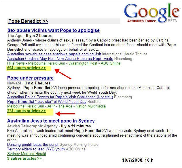 Je me souviens que, juste après le voyage de Benoît XVI aux Etats-Unis, John Allen, très soucieux de dédouaner sa profession et théoricien zélé du "man bites dog" avait développé un raisonnement alambiqué pour nous convaincre que l'attitude de la presse face à l'actualité catholique ne relevait pas du parti-pris ( https://www.benoit-et-moi.fr/archives/USA/), mais en quelque sorte de la demande. Et de préciser comme preuve: --------------- Voici un moyen rapide de faire le point là-dessus. Examinons les trois questions suivantes: