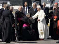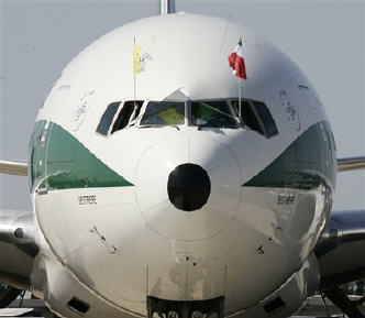 Premières photos souriantes, à l'aéroprt de Fiumicino (12/7/2008) Bon voyage, Saint-Père!