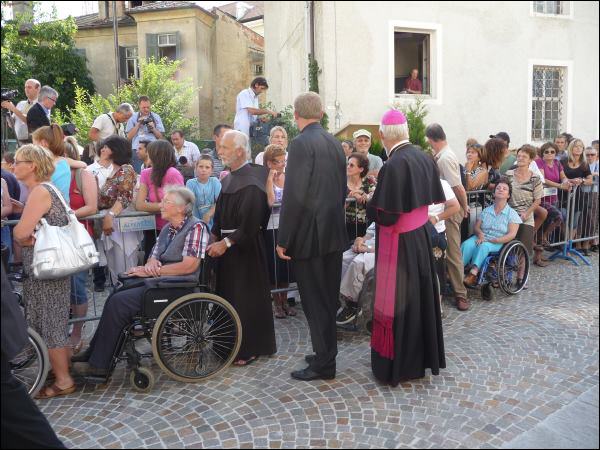 Je ne peux m'empêcher d'être bouleversée par la nouvelle. La semaine dernière, à cette même heure, il présidait devant moi la messe sur la place de Bressanone, avant l'Angelus papal. Il avait fait une très belle homélie, commentant la première lecture du jour, sur le thème de la présence de Dieu (1er livre des Rois, 19, 9a. 11-13a), et j'aimerais bien en retrouver le texte. La presse locale l'avait interrogé, et s'était fait l'écho de sa grande satisfaction du déroulement de la véritable fête. Selon les journaux, il était "radieux".