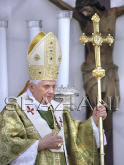 D'un crucifix plus petit que celui qui le portait à une croix plus grande que lui. Comme pour dire : regardez-la et pas moi. D'un crucifix post-moderne à une croix de la tradition. Parce que la « Una, Sancta Catholica » parle toutes les langues.