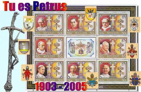 ... questo mese di ottobre ci ricorda molte date che sono collegate ai grandi papi del secolo XX, Pio XII, Giovanni XXIII, Paolo VI, Giovanni Paolo I e Giovanni Paolo II; perció come un omaggio a tutti questi grandi pastori compresi dal 1903 al 2000 ecco questo collage. "Tu sei Pietro e su questa pietra edificherò la mia Chiesa"