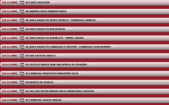 Il suffit de se rendre régulièrement sur la page d'accueil du site Fotografia Felici un site commercial (dans le meilleur sens du terme!) où je puise assez souvent, et où toutes les audiences publiques et privées font l'objet de reportages, donc de portraits "spontanés".