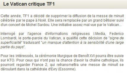 A propos des "non" du Pape, de la baisse de fréquentation des audiences... et de la suppression de la messe de minuit sur TF1 (19/12/2008)