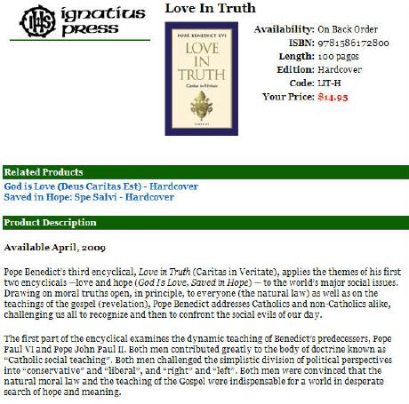 Prochaine encyclique. Un scoop du site americatho, et une anticipation d'Ignatius (26/12/2008)