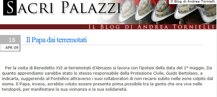 "Benoît XVI est pourtant le très grand absent de la vague de solidarité pour les victimes du séisme des Abruzzes."
