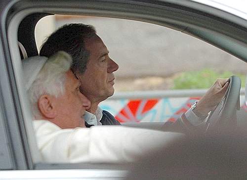 Cela n'arrive pas tous les jours - et ce n'était même pas arrivé avec Wojtyla - de voir le pape en auto, assis auprès du chauffeur... Il suffit de regarder les images pour se convaincre de l'atmosphère différente : le pape avec le coude qui s'appuie sur la fenêtre et le chef de la Protection civile au volant. Deux amis quelconques qui se déplacent en auto.