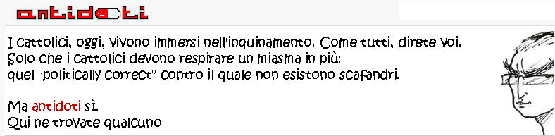 Les catholiques, aujourd'hui, vivent immergés dans la pollution. Comme tout le monde, direz-vous. Sauf que les catholiques doivent respirer des miasmes en plus. Ce politiquement correct contre lequel il n'existe pas de scaphandre. Mais des antidotes, si. Ici, vous en trouverez quelques-uns.