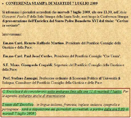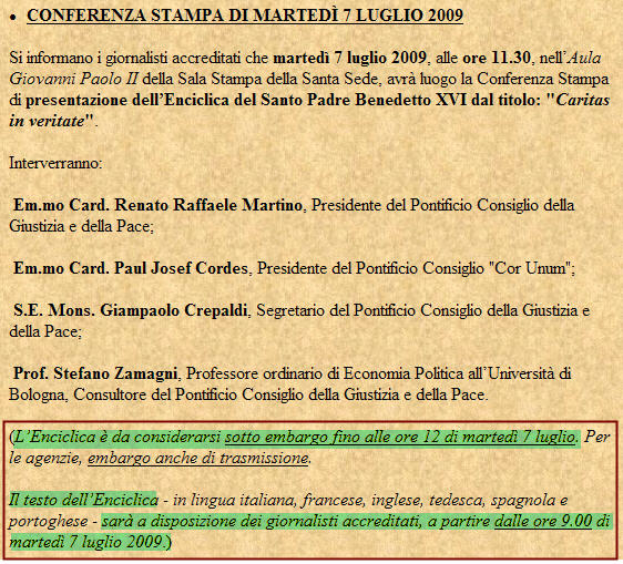 Voir ici, à propos de "l'embargo": Vilains commérages autour de l'Encyclique