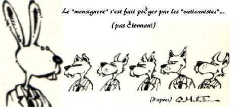 Je ne sais pas s'il s'agit d'un nouveau couac dans la communication du Vatican (de toutes façons, il faut définitivement cesser de penser qu'un fonctionnaire de la Curie qui s'exprime le fait au nom du Pape; c'est absurde, faux, et surtout trop commode!). Ou d'un effet de ce que ce génial dessin de G. Matthieu, censé représenter les jeunes loups des écoles de commerce, et détourné par moi (je suis toute prête à l'ôter si le droit d'auteur est en cause) montre trop bien. Mgr Pagano se serait-il fait piéger??