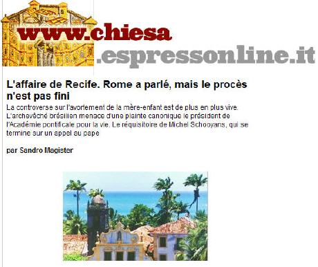 Plusieurs semaines plus tard, dans une interview accordée à Jeanne Smits du journal français "Présent" (voir ici: https://www.benoit-et-moi.fr/archives/...), l'archevêque d’Olinda et Recife, José Cardoso Sobrinho, a redemandé en vain à faire jouer son droit de réponse(...)