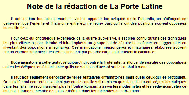 Difficile, selon moi, d'instrumentaliser les propos de Mgr Fellay: il a bien déjoué les pièges que lui tendaient l'interviewer, tout en restant ferme dans les principes...