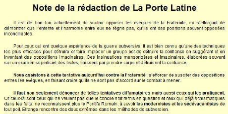 Le site de la Porte Latine a mis sur sa page d'accueil (29 juin 2009) une "note, que voici: