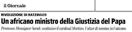 (pour nous annoncer le remplacement du cardinal Renato Raffaele Martino, à la tête du Conseil Pontifical Justice et Paix, par Mgr Robert Sarah, archevêque émérite de Conakry, et actuel secrétaire de la Congrégation pour l'évangélisation des peuples).